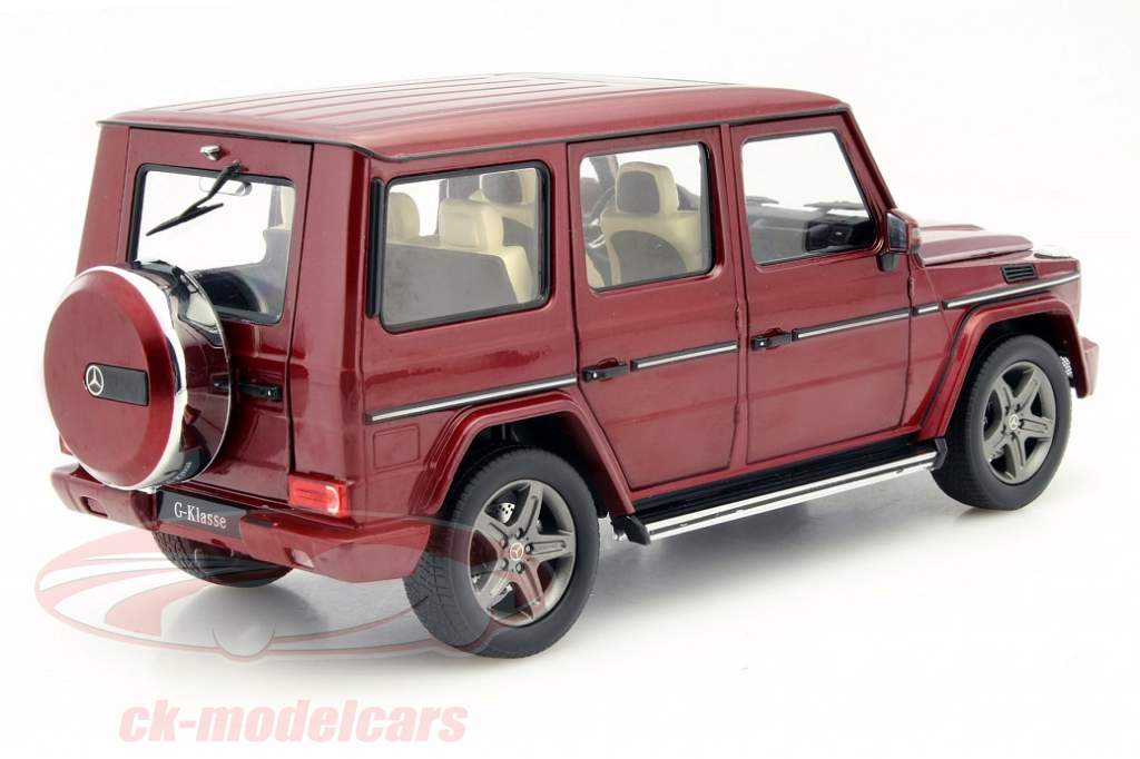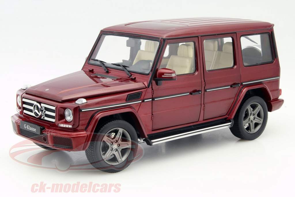 Gute Modellautos von der aktuellen G-Klasse aus Zinkdruckguss im Maßstab 1:18 hat es bereits von Autoart gegeben, doch iScale und Mercedes-Benz bieten jetzt mit den Werbemodellen zum intern mit W 463 bezeichneten Geländespezialisten eine ausgezeichnete Fortschreibung der Geschichte der G-Klasse im Miniaturformat. Die unter der Artikelnummern B66961011 in Thulit Rot Metallic und unter B66961010 in Diamant Silber Metallic erhältlichen Modellautos bieten rundum zu öffnende Türen und Hauben, sind damit also auch eine hervorragende Alternative für die Sammler, die sich nicht für die G-Klasse-Modelle von GT-Spirit aus Resine begeistern können. Auch preislich können sich die Neuheiten von Mercedes-Benz und iScale sehen lassen, denn sie liegen deutlich unter den Preisen, die seinerzeit Autoart aufgerufen hat. Blicken wir doch gemeinsam auf die Details der beiden Miniaturen.