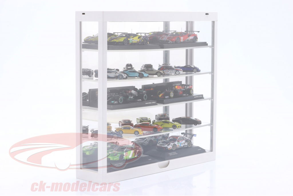 Vitrina individual con Iluminación LED y Espejo para escala 1:18, 1:24, 1:43 blanco Triple9