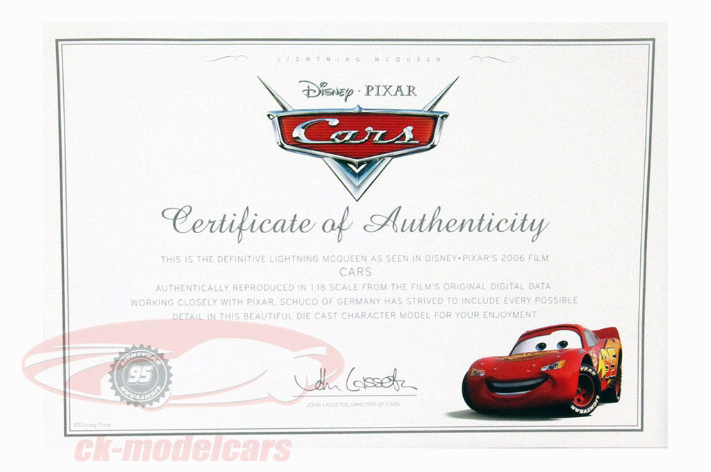 Lightning McQueen desde la Disney Película Coches con Escaparate rojo / amarillo 1:18 Schuco